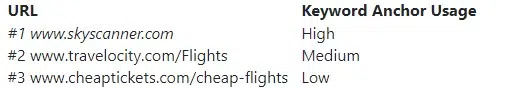 In the example URL #1 above, the keyword cheap flights isn’t used at all, so you have the highest amount of freedom when it comes to sending anchors with the word “cheap flights”. URL #2 is what a majority of people are probably working with. In that case, stick to the niche-specific target anchor text. URL #2’s configuration is also what I recommend for onsite SEO. URL #3 uses “cheap” twice, which really limits you in how many target anchors you can send to this URL. I would be extremely careful about over-optimization if you’re in the same situation as URL #3.