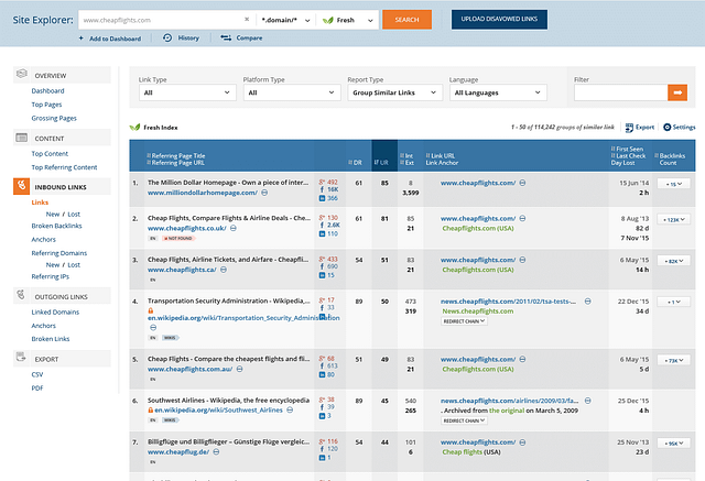 In this example I am using Ahrefs site explorer to see an in-depth view of links