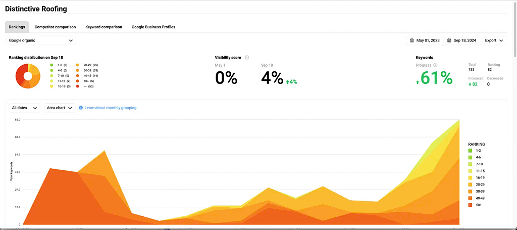 With such impressive growth in just over a year, Distinctive Roofing is set to continue expanding its SEO footprint. As they build on these successes, they are well-positioned to dominate both the national and local markets, reaching more customers and solidifying their reputation as a leading Florida roofing provider. Let’s keep up the good work!