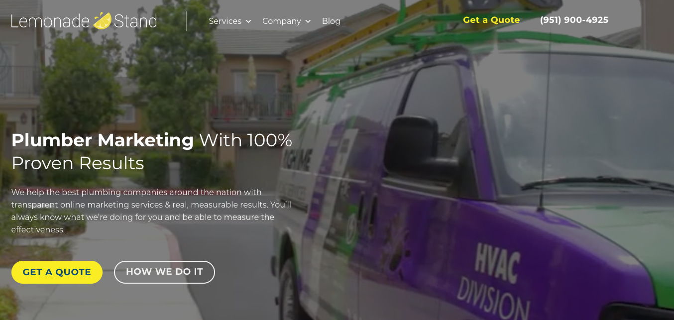 Lemonade stand is a large, full-service digital marketing agency with multiple locations across the US. Though they work with a range of different clients and business sizes, Lemonade Stand also specializes in HVAC and Plumber marketing. This agency offers SEO, remarketing, paid advertising, graphic design, and much more. The full list of services offered is on their website. Lemonade Stand could be a good option for a large plumbing operation that does business nationally.
