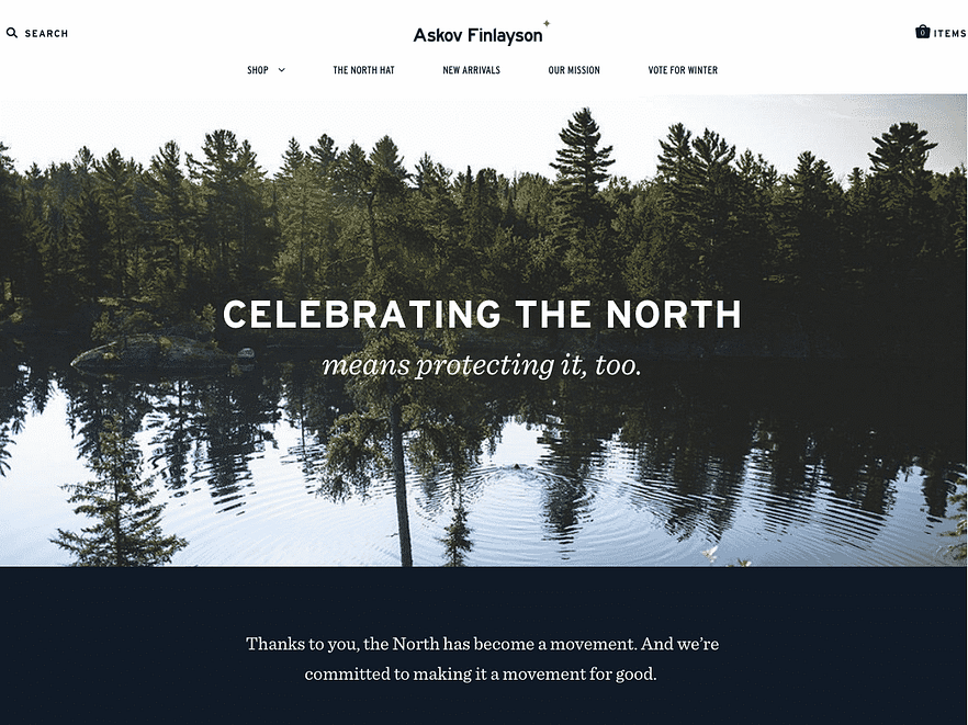 If you know me, you know I love local casual menswear brand Askov Finlayson, so I had to give a shoutout to their website too. The Minnesota company takes the time to use nicely shot, crisp, clear photos that emphasize their brand values. The lesson here: avoid stock images when possible. Now, you can find some good images online that fit your brand well, but make sure you view them as placeholders rather than permanent.