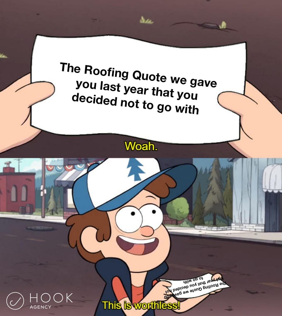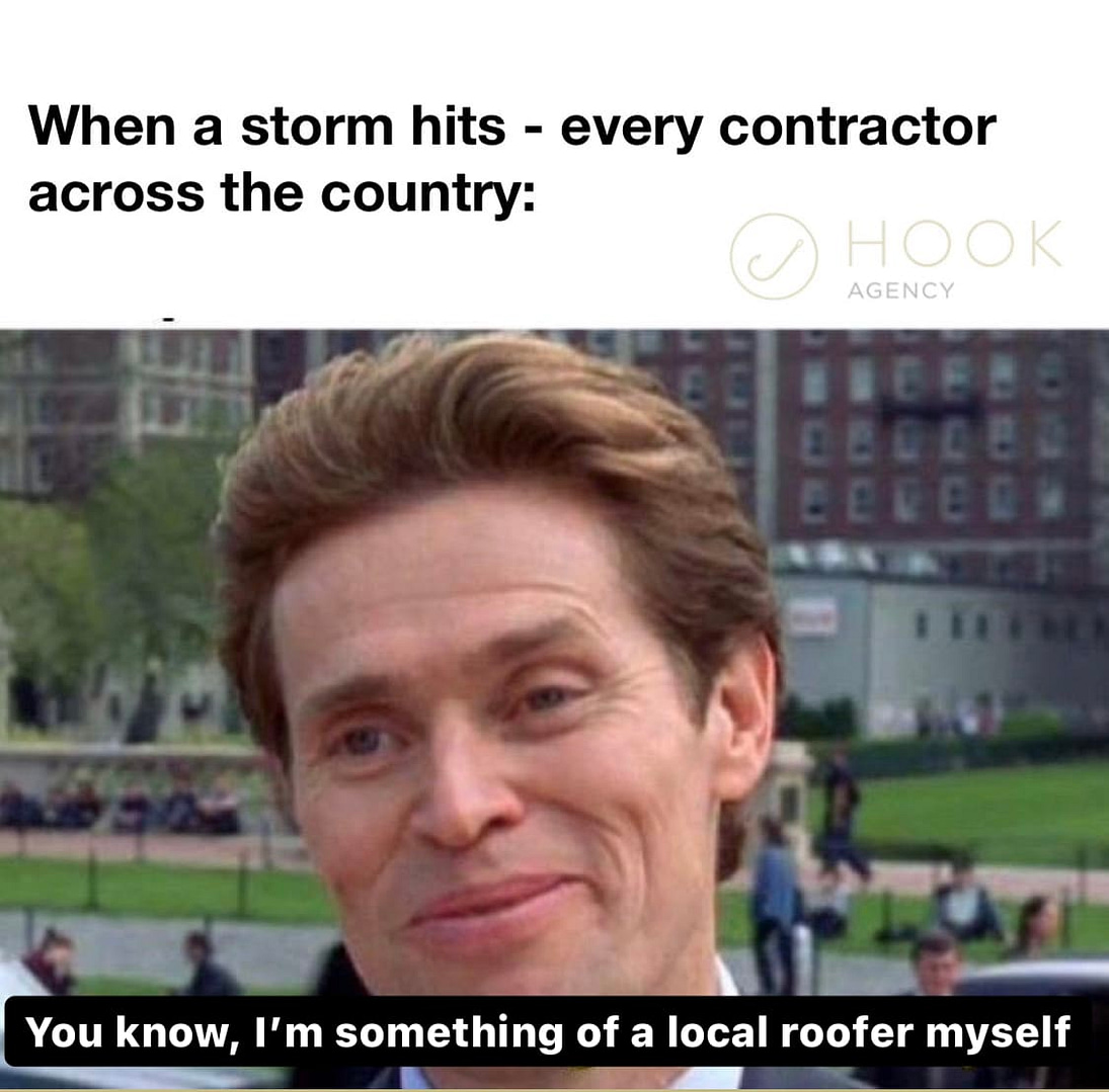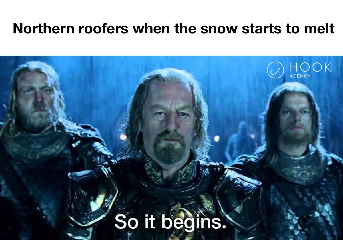 Here at Hook Agency, it is rare that a day goes by without someone showing off the latest and greatest meme they found, so we thought it would be fun to share some of our favorite roofing memes with our friends in the roofing industry. Who knows, maybe you’ll find yourself in one of our top choices.