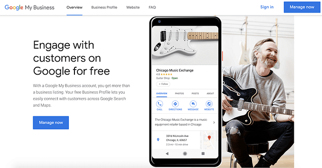 To get started, go to https://www.google.com/business/ and click Manage now.